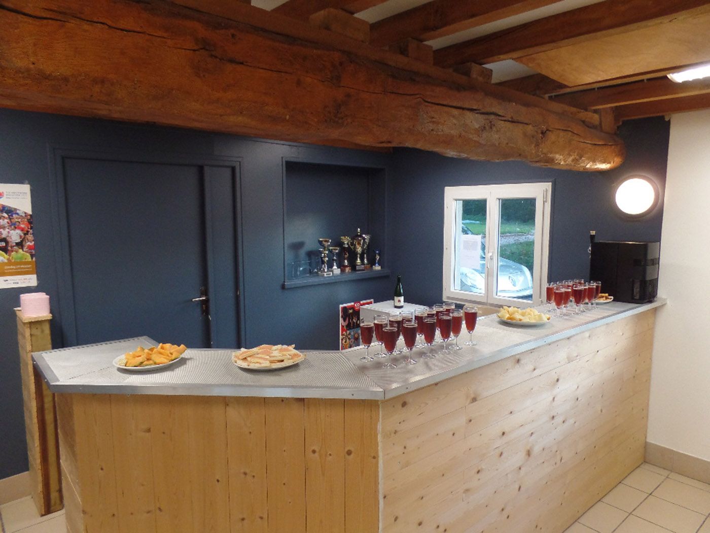 With a bar, tables and chairs for 60 people and toilet facilities, the dining room is perfectly equipped to welcome you in the best conditions. You can arrange the tables as you wish.
