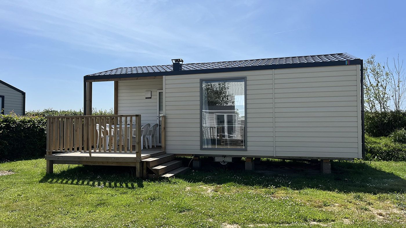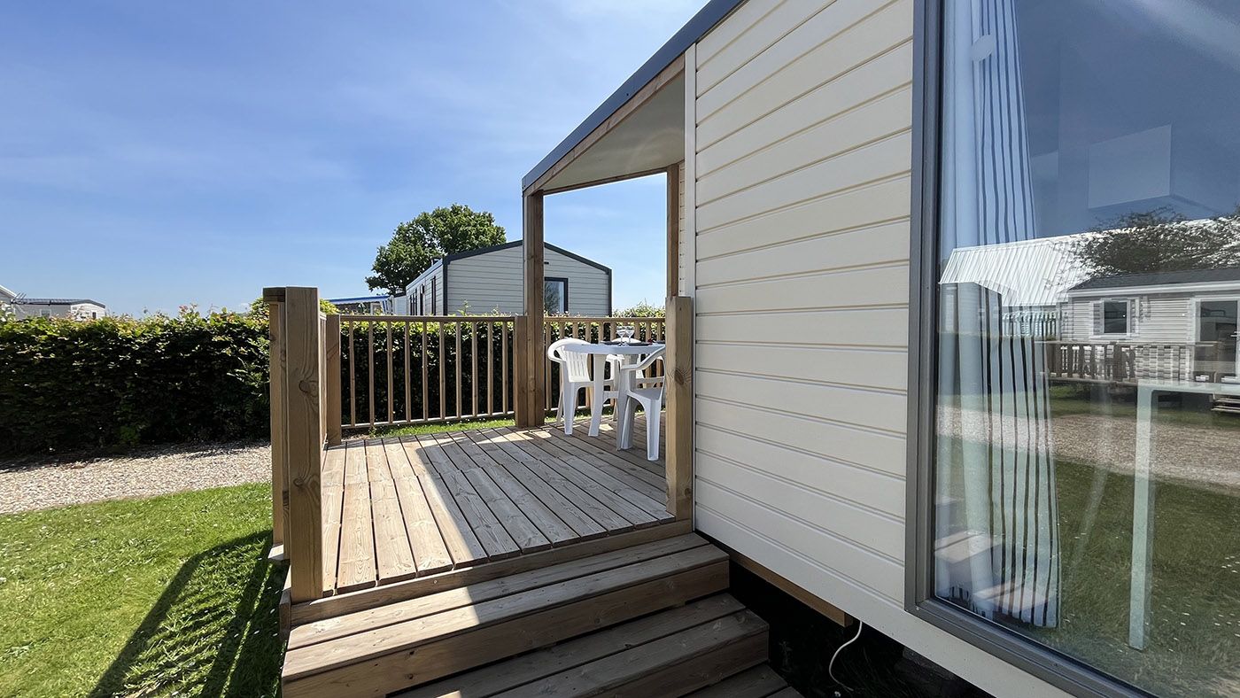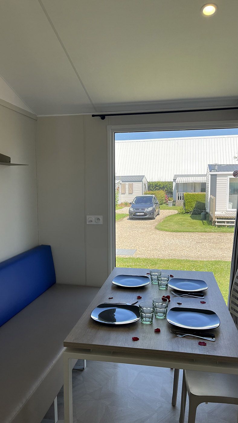 The Alizé mobile home is chic and minimalist, featuring a bright living room extended by a semi-covered terrace, for up to 4 people to enjoy during your stay at the campsite in Côte d’Albâtre.