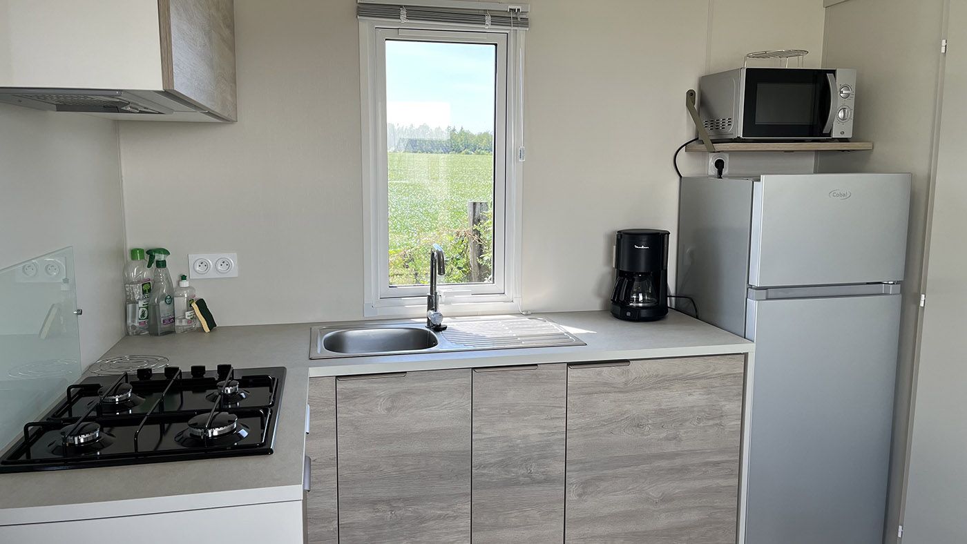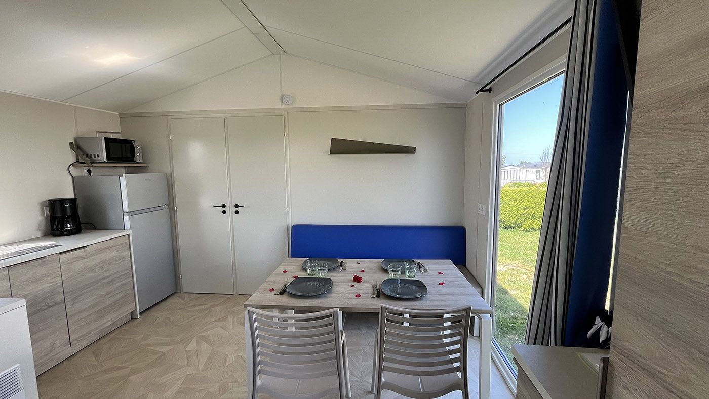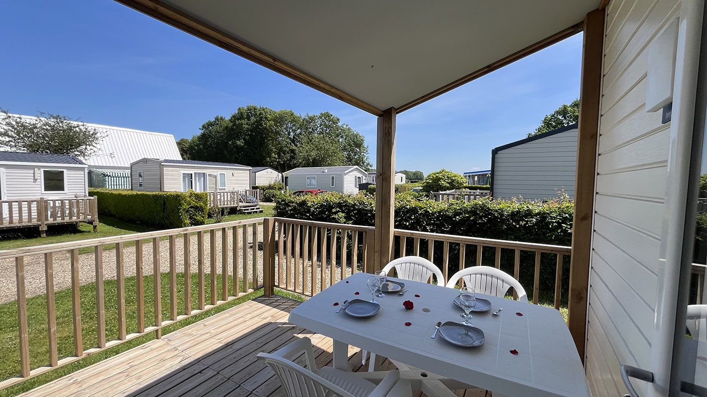 The Alizé mobile home is chic and minimalist, featuring a bright living room extended by a semi-covered terrace, for up to 4 people to enjoy during your stay at the campsite in Côte d’Albâtre.
