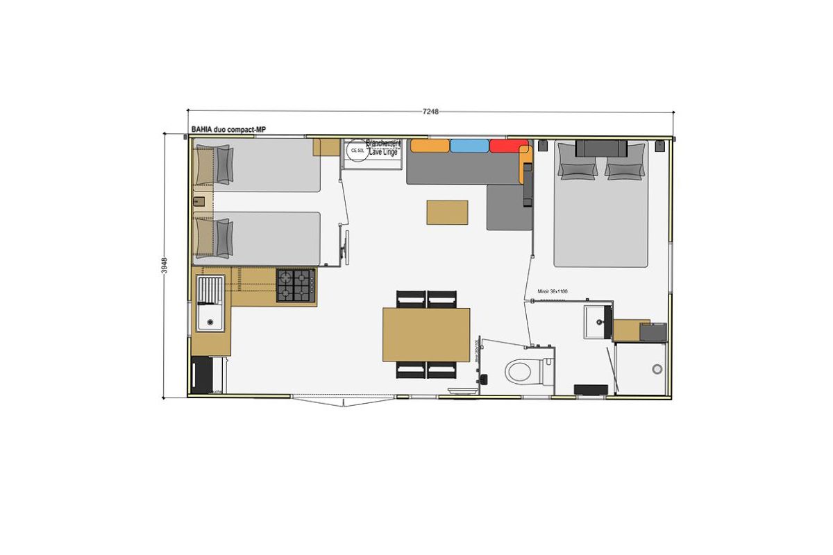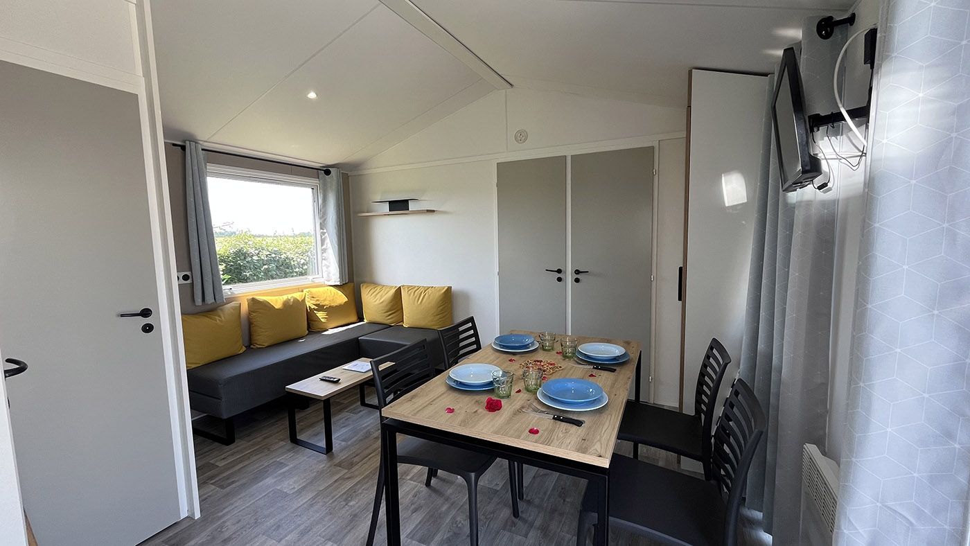 If you like wide open spaces in your holiday rental, the Bahia mobile home is perfect for you! You’ll enjoy the 29 m² surface area, with double doors opening onto the terrace.
