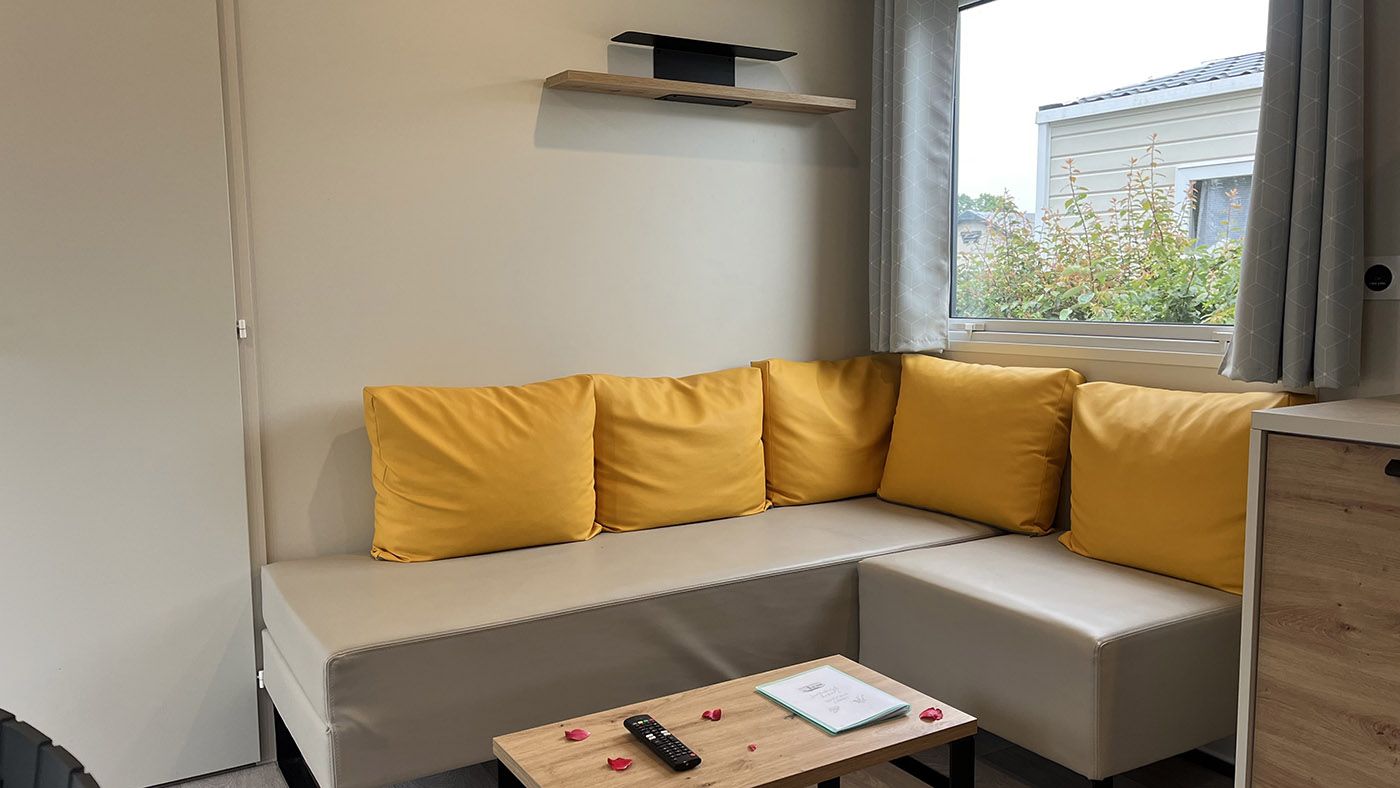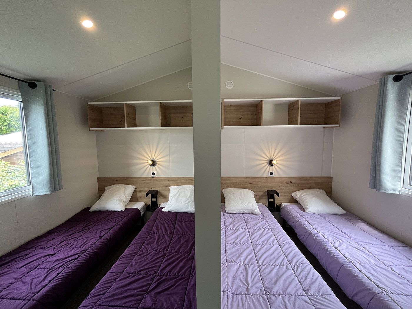 With 3 bedrooms and a chic, spacious living room, this 33 m² mobile home can accommodate up to 6 people on a sunny pitch, with all the space and comfort you need for your holiday at our campsite in Côte d’Albâtre.